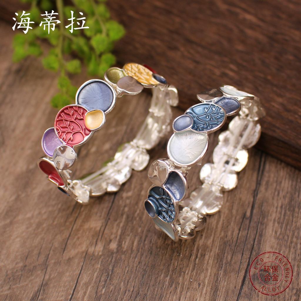 Farbmalkunst Öl Runde Lebensbaum elastisches Armband, personalisiertes modisches vielseitiges Armband für Damen