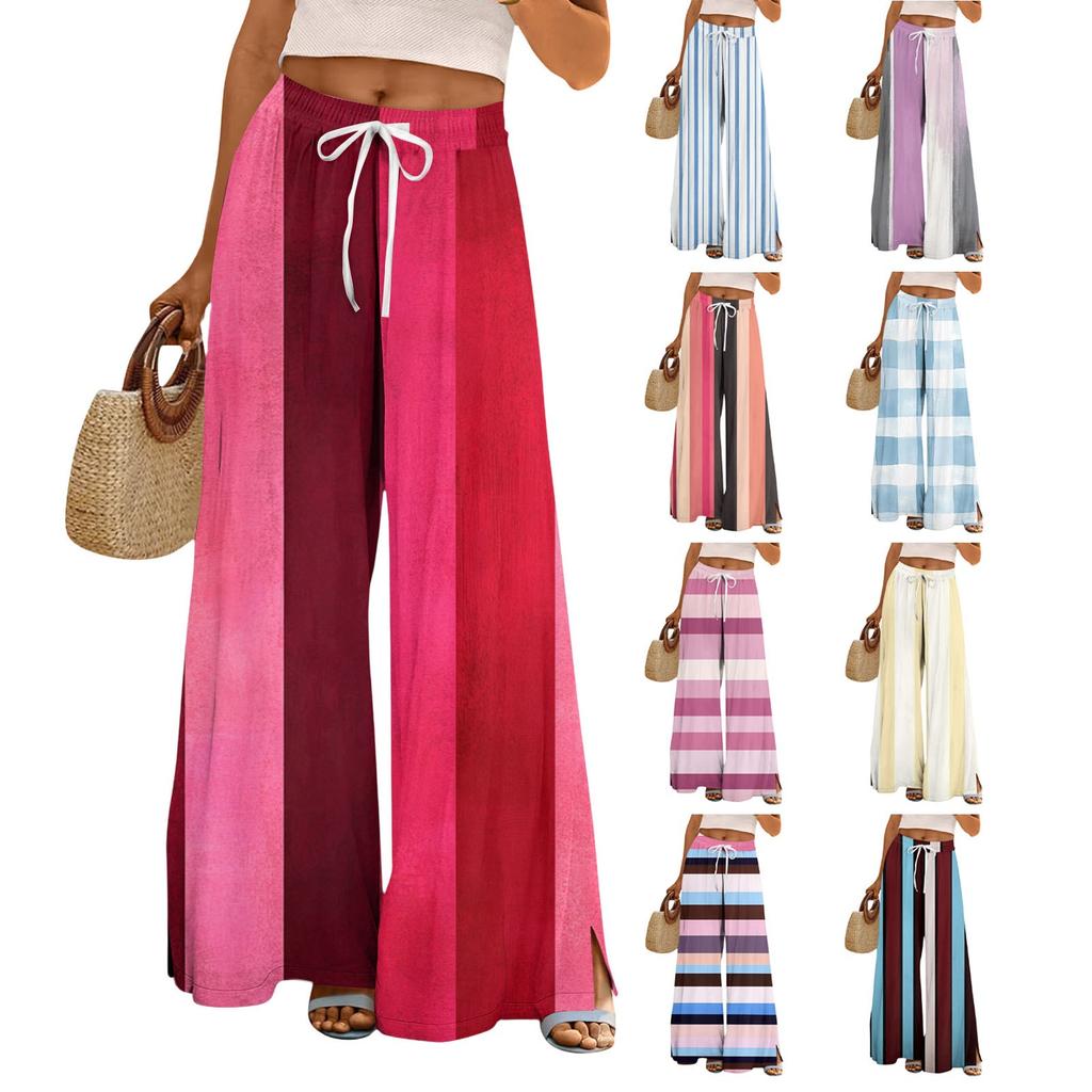 Damen Bedruckte Weitbeinige Hosen mit Taschen Hohe Taille Kordelzug Lockere Freizeit-Hosen