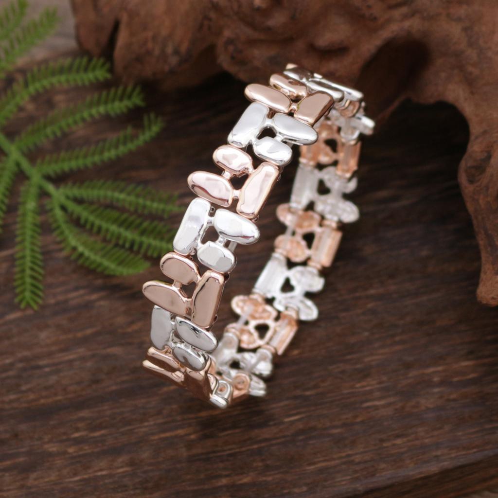 Hohles geometrisches Linien-Elastikarmband, personalisiertes vielseitiges zweifarbiges Zinklegierungsarmband für Damen und Herren