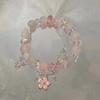 Vierteiliges neues Pfirsichpuder-Glasperlenarmband, frisches und süßes Temperament, weißes Schleifenarmband kostenlos dazu.