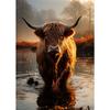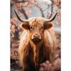 Schottisches Hochlandrind in Blumen Porträt Niedliches Wildtier Poster Leinwandmalerei Wandkunst Bilder Zuhause Bauernhaus Dekor Geschenk
