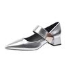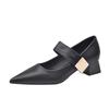 Neue Retro Mary Jane Schuhe Damenschuhe Metallschnalle leichter Ausschnitt niedriger Absatz Nische mit Rock spitz zulaufende einzelne Schuhe