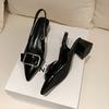 Mode Dicke Ferse Taschenkopf Sandalen Damen Frühling und Sommer Neu Temperament Spitz Hohe Absätze Flacher Mund Leere Einzelne Schuhe