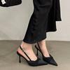 Spitze High Heels Damen Schwarz Neu Frühling und Sommer Flache Einzelne Schuhe Stiletto Tasche Kopf Sandalen
