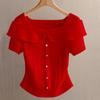 Damen Sommer Kurzarmhemd - Elegantes Knopfdesign im nahöstlichen Stil, Leichtes und atmungsaktives Material, Maschinenwaschbares Unifarbenes Hemd