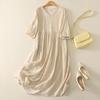 Echtes Frühling und Sommer neue Baumwolle und Leinen literarisch und retro locker V-Ausschnitt japanisch und koreanisch Reisekleid Damenbekleidung
