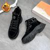 Damen Winter Wildleder Martin Stiefel - Runde Zehenpartie, Dicke Sohle, Samtfutter, Schnallendetail, Mid-Calf Stil