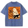 Halloween Schwarze Katze Geist Print Paar T-Shirt Übergroßes Was Baumwolle Kurzarm Niedlicher Lustiger Stil Mode Tees