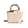 Umhängetasche aus natürlichem Stroh mit Holzgriff für Damen, Strandtasche, Urlaubsreisetasche
