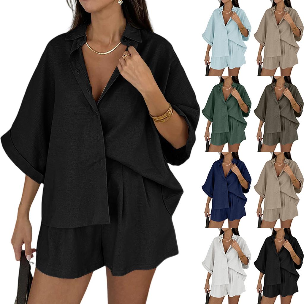 Damen Locker Bequemes Lässiges Und Modisches Halbarm-Oberteil Und Shorts Zweiteiliges Set