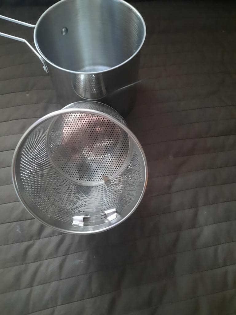 Keine große Delle am Topf, aber ich habe ihn trotzdem behalten, weil ich die Fritteuse brauche.