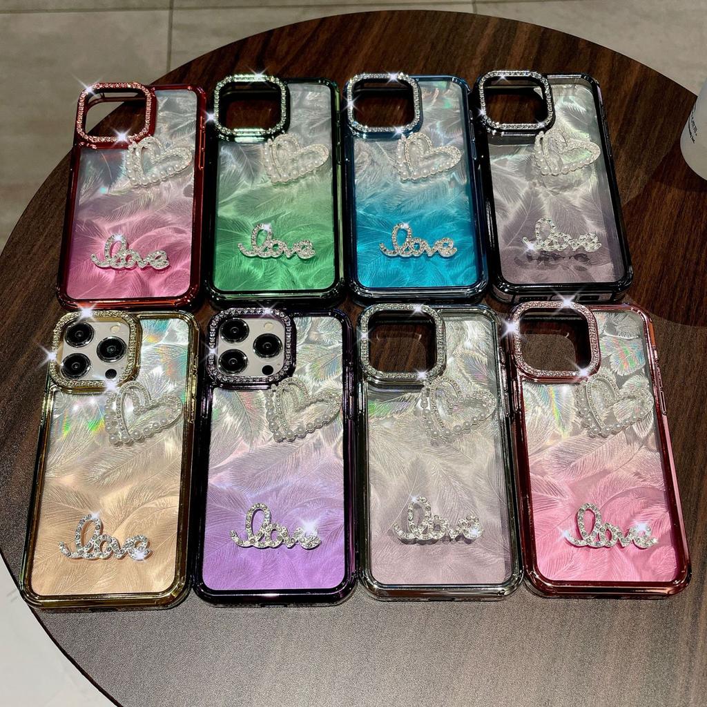 High-end Electroplated Lens with Diamond-encrusted Heart, Suitable for DIY IPhone15Pro Phone Case, Apple 14 Gradient Feather