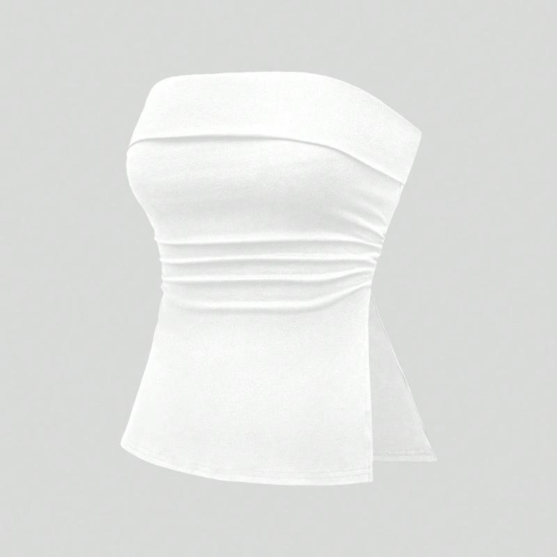 Sommer Straße schulterfrei ein Hals einfarbig schlicht kurz geschnitten Schlitz Slim Fit schlankmachende Damenweste