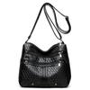 Soft Leather Multi Compartment Woven Shoulder Crossbody Bag