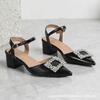 Spitze High-Heel-Sandalen Sommer quadratische Schnalle Strass hinterer Riemen Mode Damenschuhe flach dicker Absatz Taschenkopf Damen-Sandalen
