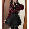 Jirai kei Outfit Lolita Mädchen Bluse Damen Langarmhemd Kawii Schleife Schwarz Röcke Hemden Y2K Süßer Japanischer Damenstil Set