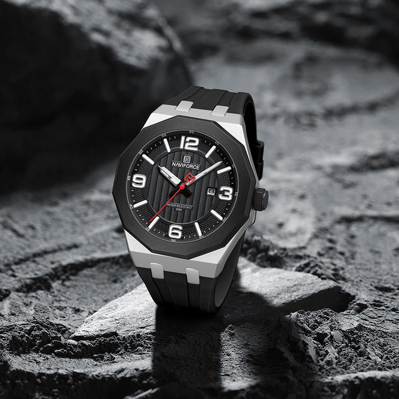 NAVIFORCE Men's Fashion Quartz Watch Polygon Dial Luminous Hands Calendar Silicone Strap 30m Waterproof Casual Men's Boy's Watch NF8079
