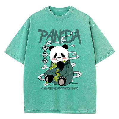 Übergroße Damen Washed T-Shirts Kawaii Cartoons Panda Aufdruck T-Shirts Distressed Rundhals Baumwoll T-Shirts Kleidung