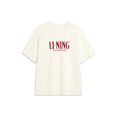 Li Ning Sports Lifestyle Serie High Street American Vintage Casual Buchstabenprint Vielseitiges Kurzarm-T-Shirt Unisex Oberteile Off-White AHSV267-8