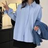 Vielseitiges Damenhemd mit langen blauen Ärmeln - Frühling & Herbst 2024, modische lockere Passform für Studentinnen, ideal als Innen- oder Oberbekleidung.