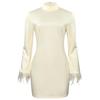 2024 Herbst Einfarbiges Feder-Patchwork Slim Kleid mit Rundhalsausschnitt