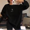Mädchen Locker Langarm Baumwoll-T-Shirt - Schwarz, Trendiges Frühlings-/Herbst-Oberteil, All-Match Studentenstil.