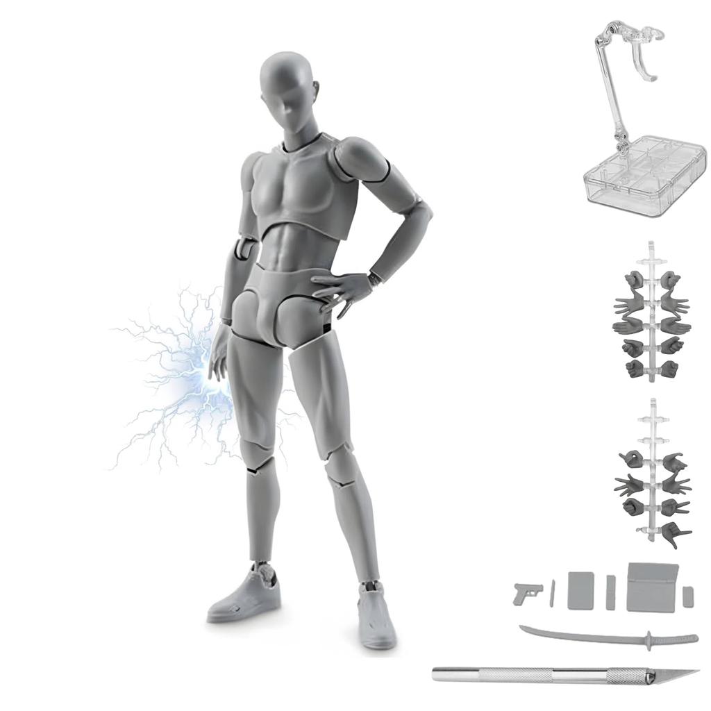 Unsere Zeichenpuppe (Männliches/Weibliches/Kombiniertes Modell) ist eine ideale Wahl für Künstler. Dieses hochwertige Zeichenmodell ist nicht nur zum Zeichnen und Illustrieren, sondern auch ein starker Partner in jeder Künstlerwerkstatt.. Einzelset beinhaltet: 1 Figur 17 Arten von Handmodellen 7 Arten von Zubehör 3-in-1 Ständer Doppelset enthält 2 Einzelsets, ein männliches Modell und ein weibliches Modell. Jedes Set enthält verschiedene Ersatzteile: verschiedene Handmodelle, Schwert, beweglicher Ständer, Aufbewahrungsbox. [Gelenkbewegung] Dieses Zeichenmodell hat 30 bewegliche Gelenke (Kopf, Brust, Taille, Schultern, Ellbogen, Handgelenke, Knie, Knöchel usw.) verschiedene Posen nachzustellen. Es enthält austauschbare Gelenkteile und eine breite Palette von Waffen und Werkzeugen und kann sich um 360 Grad drehen.. Als professionelle Zeichenübung können Sie menschliche Bewegungen genauer erfassen und lebendige Bilder zeichnen. (Teile sind im Set enthalten). [Mehrzweck] Dieses menschliche Modell kann für mehrere Zwecke verwendet werden. Es ist perfekt für Figurenkunst, Schreibtischdekoration, Skizzieren, Illustrationsproduktion, Geschenke usw.. Mit detaillierter Modellierung kann es auf den Schreibtisch gestellt werden und