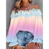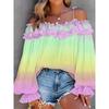 YYFS Damenmode Lässig Frühling Herbst Farbblock-Print Langarm Ein Schulter Blusen & Hemden