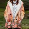 Damen Warme Plüsch Kapuzenjacke mit Knöpfen Übergröße Blumiger Pflanzen-Print mit Taschen