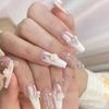 Wearable White French Camellia Bow Star Pearl Removable Nail Patches