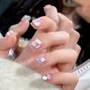 Xiaohongshu Pink Heart Diamond Nail Patches - Short Transparent Wearable Manicure Tips