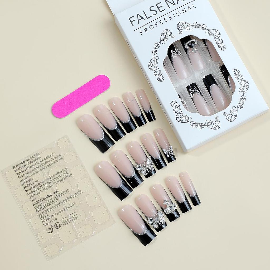 XXXL Extra Long Black French Butterfly Dot Nail Art Stickers