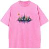 Herren Retro Geometrisch Happy Natural Washed T-Shirt Baumwolle Vintage Gebleichtes T-Shirt Tops Lässig Locker Bleich T-Shirt