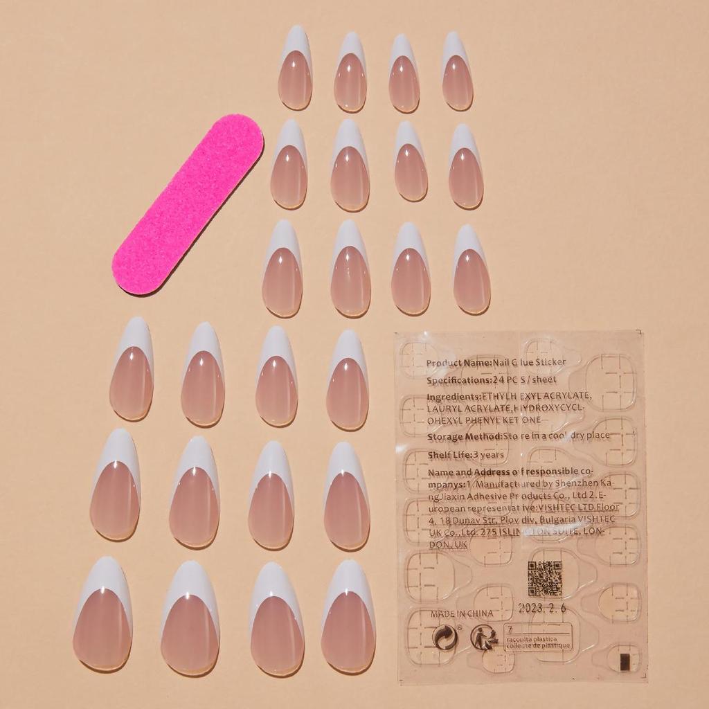 Handmade French White Edge Almond Shape Press-On Nails - Minimalist Nail Art