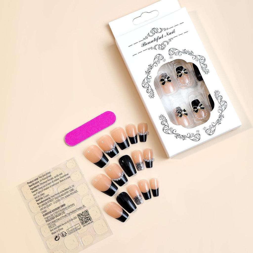 Minimalist Black Bow Ladder False Nails - French and American Style