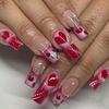 European & American Long Coffin Red White French Heart & Starburst Print Removable False Nails