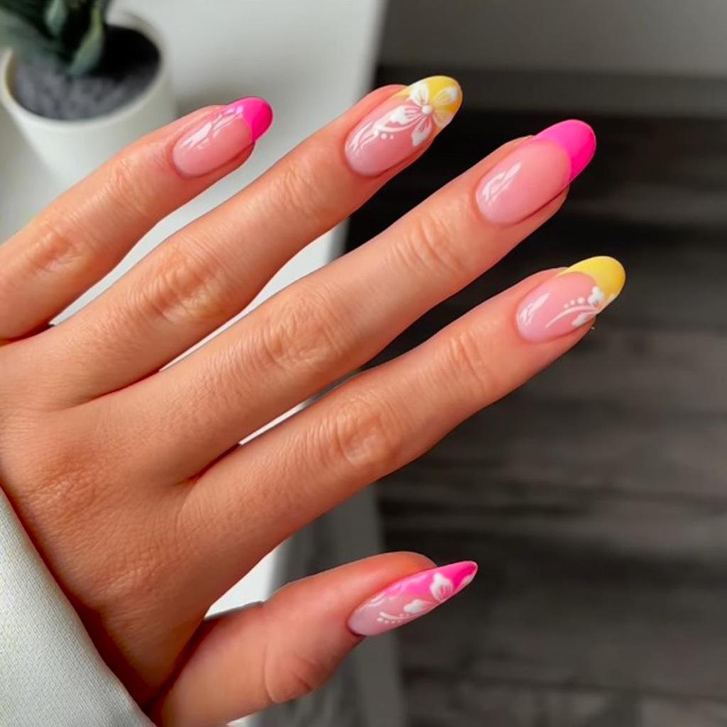Bunte Französische Mandelblüten Nagelkunst - Süße, Frische, Europäische & Amerikanische Stil Künstliche Nägel