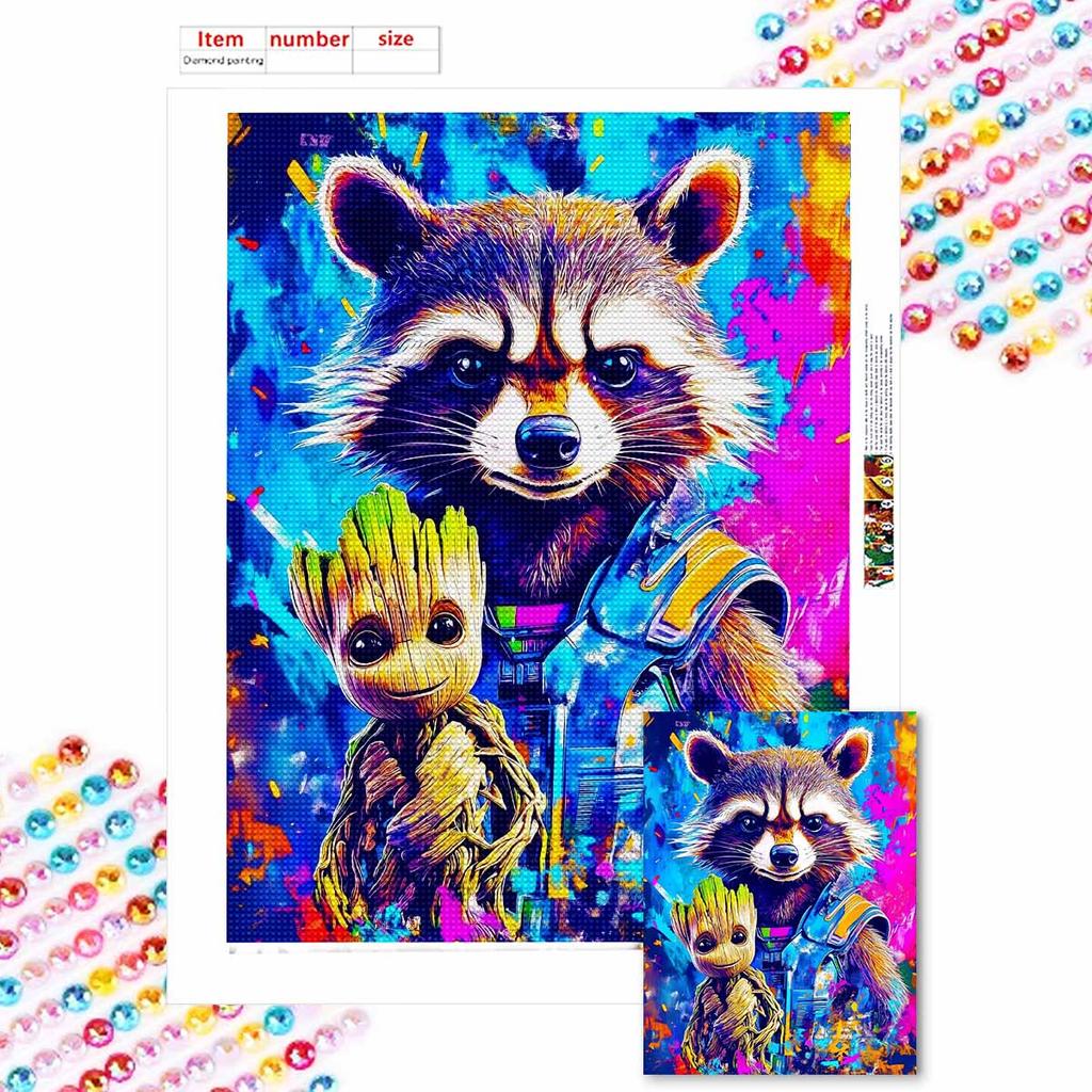 DIY Diamond Painting Groot and Raccoons Cross Stitch Kit Mosaic Art Diamond Painting Full Circle Diamond Home Decoration
