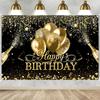 1 Stück 72,8x43,3in Übergroßes Stoff-Geburtstagsposter - Schwarz & Gold Logo Deko für Jubiläum, Fotoautomaten-Hintergrund & Partyzubehör