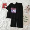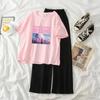 2PCS frauen Sommer Casual Anzug Comic Kurzen ärmeln T-shirt + Lose Hosen Zwei-stück Sets Student breite bein Hosen Anzug