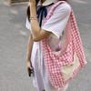 Sweet Double Sided Vest Bag Cloth Canvas Tote Bag Casual Lattice Shoulder Bag Women