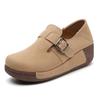 Damen-Keilabsatzschuhe mit Retro-Metallschnalle, Ein-Pedal, weichsohlig, dicksohlig, aus mattem Leder, Slipper