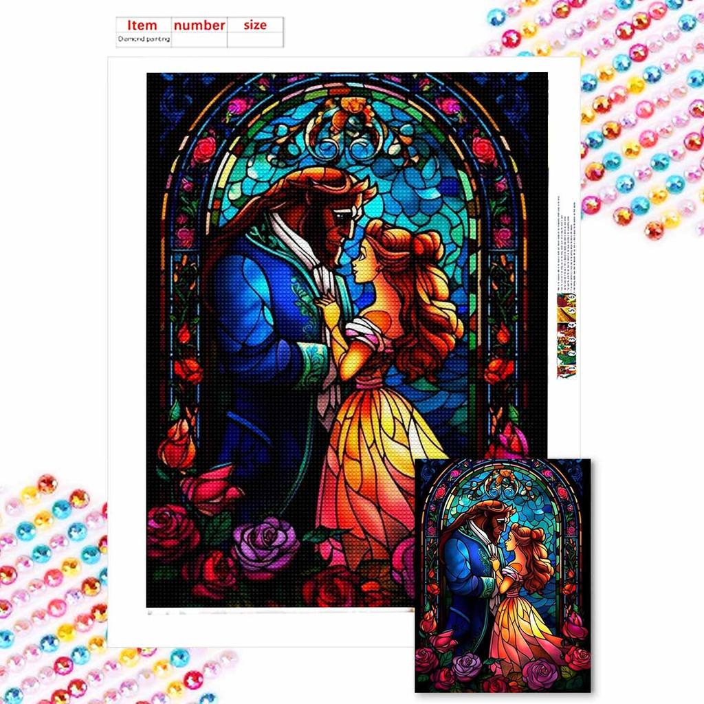 5D-Diamantmalerei-Sets zum Selbermachen für Erwachsene, „Die Schöne und das Biest“ – Komplettes Set mit runden Kristalldiamanten für Anfänger zur Wanddekoration zu Hause