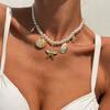 Holiday ocean wind shell starfish pendant necklace set, simple imitation pearl gravel necklace for women