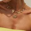 Accessories, Personalized Chain Double Necklace, Retro Relief Portrait Crescent Moon Pendant, Tassel Necklace Female
