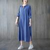 Frühling/Sommer 2023 Damen Übergröße Gestreiftes Lässiges Langes Kleid - Literarischer Stil, Lockere Passform, Schlankmachender Effekt