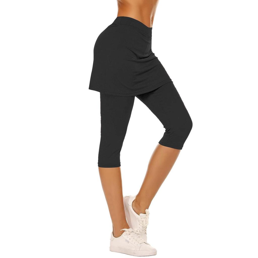 Damen Elastische 3/4-Hose mit hoher Taille, lässige Active Fit-Caprihose mit weitem Bein und Taschen