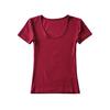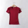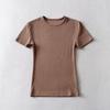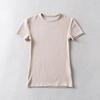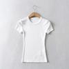 Europäisches und amerikanisches Damen-T-Shirt mit einfarbigem Slim-Fit-Retro-Kurzarm