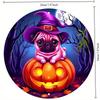 2d Flat 20*20cm The Circular Wooden Sign Features Graphic Design Witch Hat, and Pumpkin Pattern. Halloween Themed, for Home, Garage, Restaurant, Cafe.