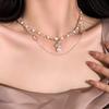 Explosive multi-layer oval zircon pearl necklace, simple design sense, temperament, clavicle chain, light luxury, personalized versatile item